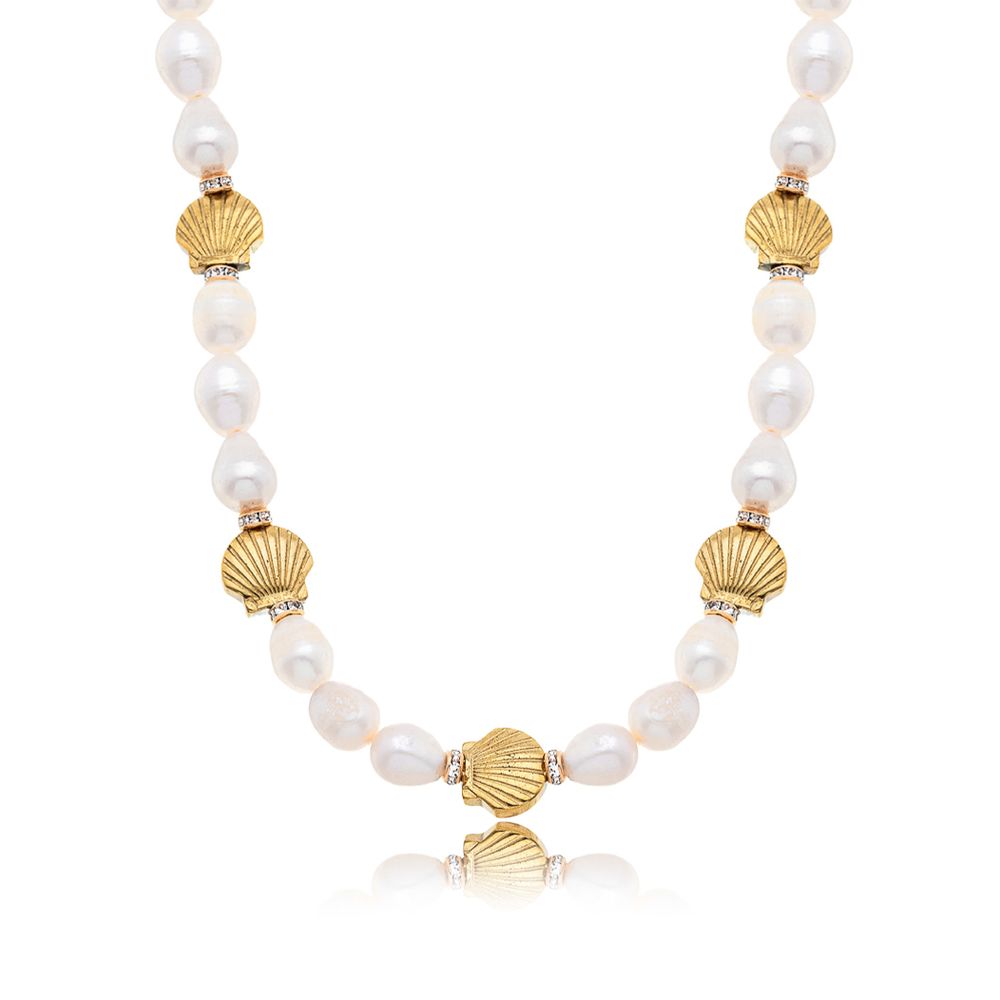 Colar Sereia Perolado Conchas Banho Ouro 18k Pérola de Água Doce Transparente U |