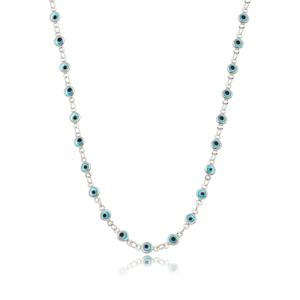 Colar Teen Choker Olho Grego Banho Platina Azul U |