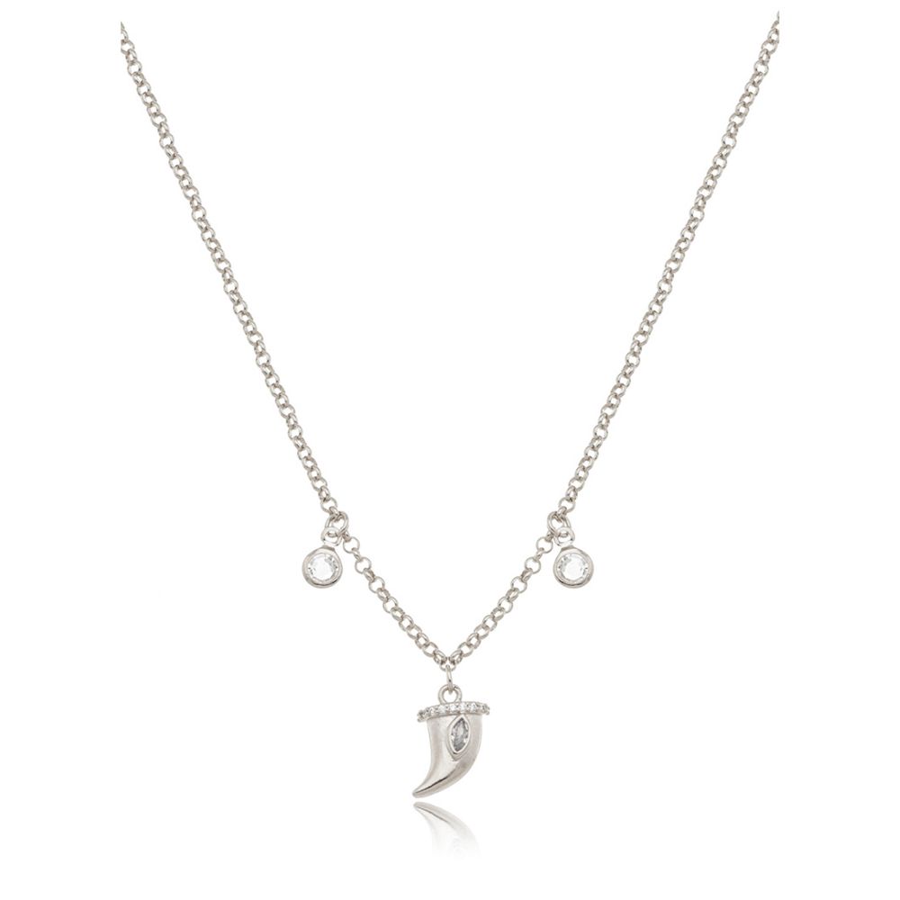 Colar Teen Liso Pingente Dente de Sabre Banho Ródio Transparente U |