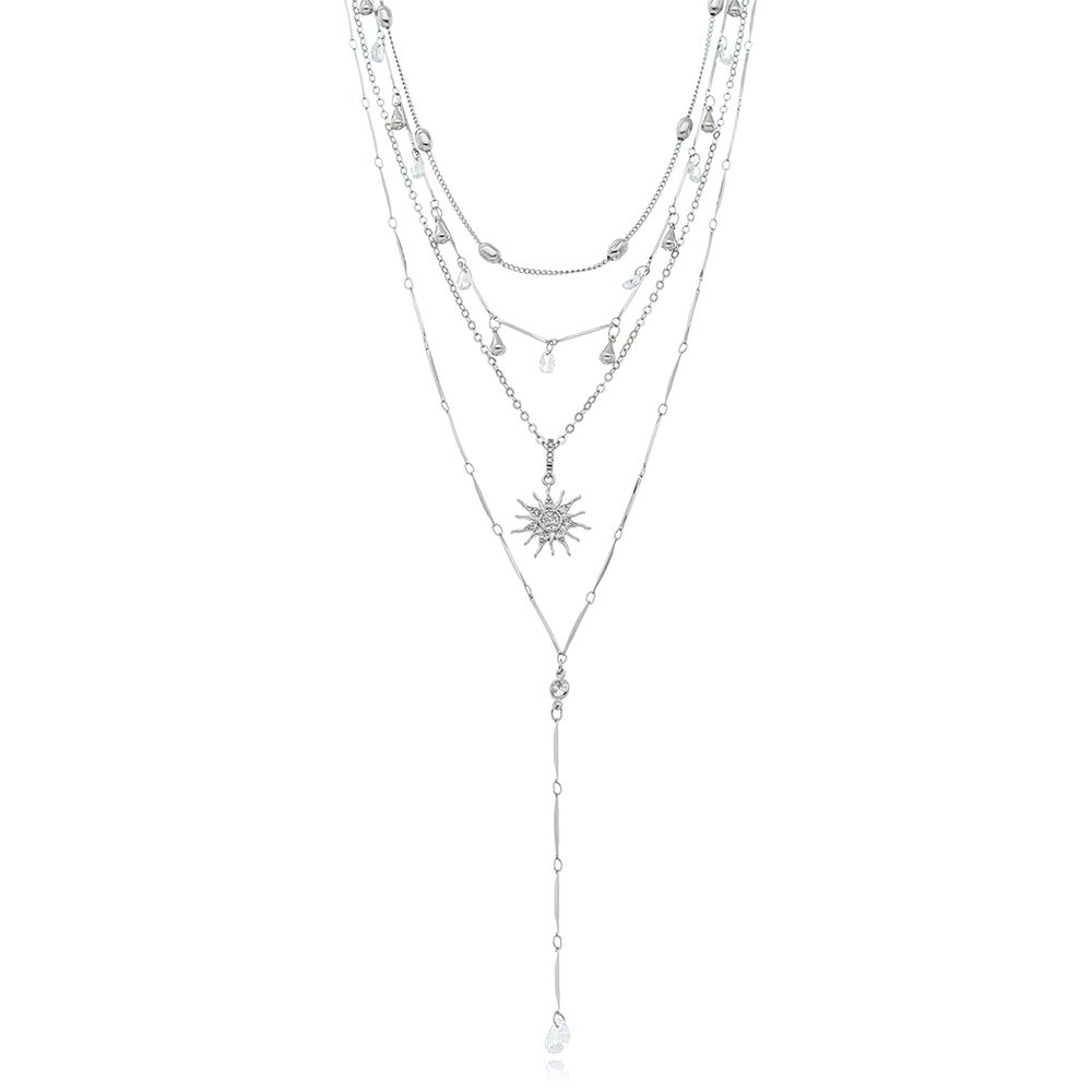 Colar Teen Quatro Voltas Pingentes Diversos Banho Ródio Zircônia Transparente U |