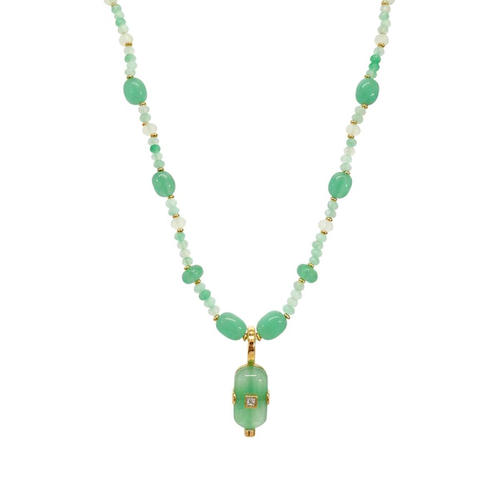 Colar Volta Pingente Geométrico Pedra Banho Ouro 18K Jade Verde Agua U |