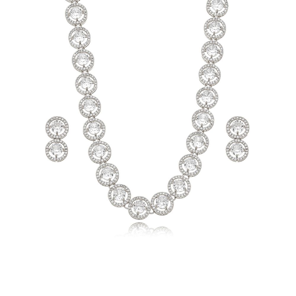 Conjunto Círculo Volta Cravejada Banho Prateado Zircônia Transparente U |