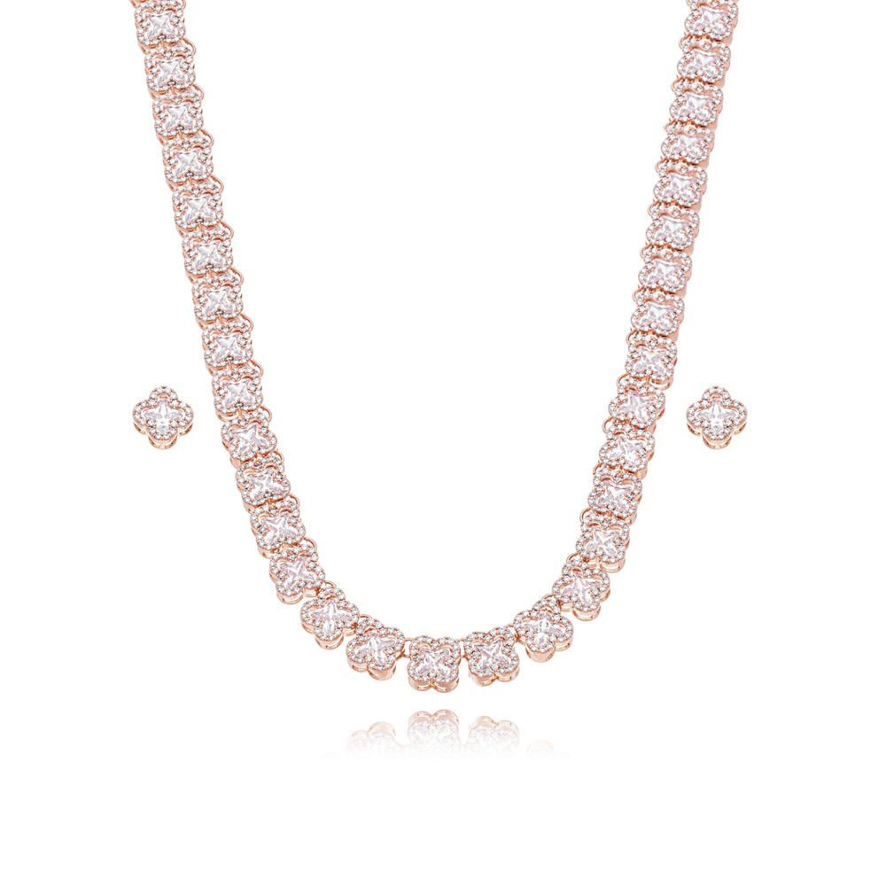 Conjunto Completo Trevos Cravejados Banho Ouro Rosê Zircônia Transparente U |