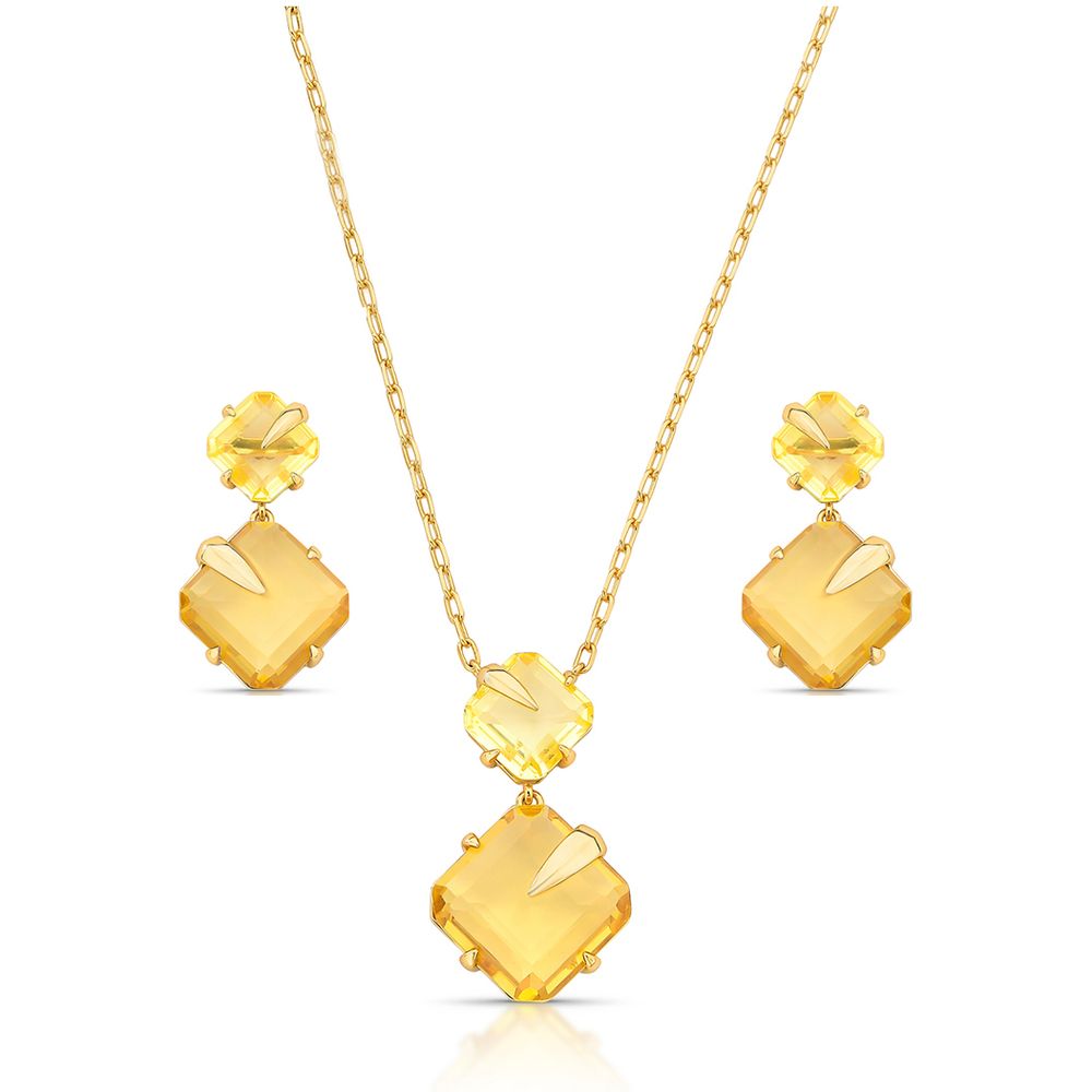 Conjunto Formas Geométricas Banho Ouro 18K Cristal Amarelo U |