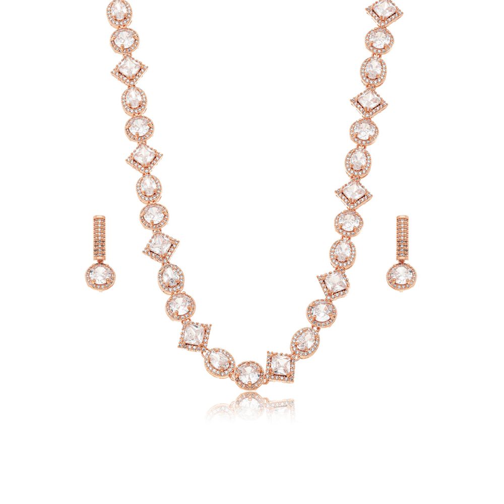 Conjunto Formas Geométricas Cravejadas Bijuteria Rosê Zircônia Transparente U |