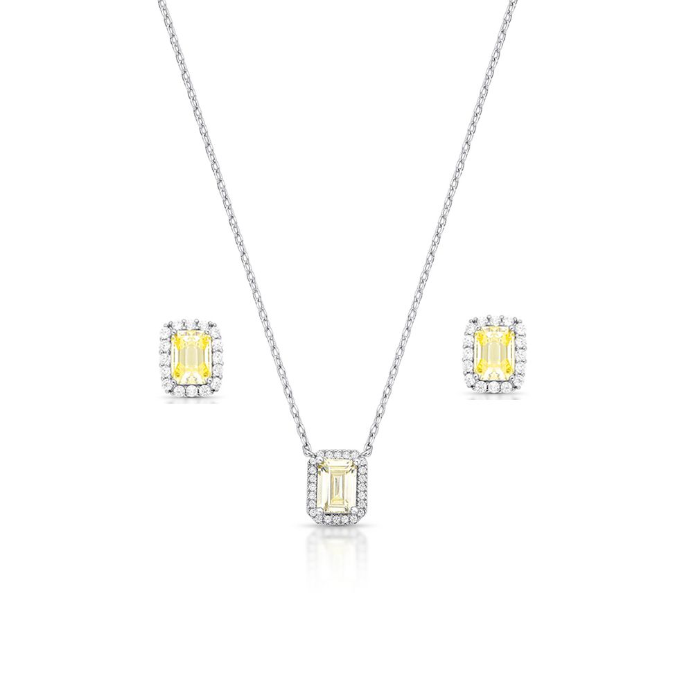 Conjunto Geométrico Cravejado Banho Ródio Cristal Yellow Fancy U |