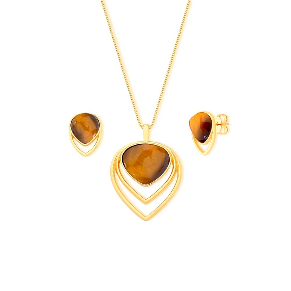 Este conjunto em Ouro 18K destaca-se pela sua sofisticada pedra natural em formato de gotas invertidas, meticulosamente trabalhada com detalhes vazados que realçam a sua beleza. O design elegante não só exala um charme atemporal, mas também proporciona uma combinação única de estilo e sofisticação. A peça é ideal para ocasiões especiais, trazendo um toque de luxo e exclusividade a qualquer look. Perfeito para quem valoriza a qualidade e o requinte em cada detalhe.