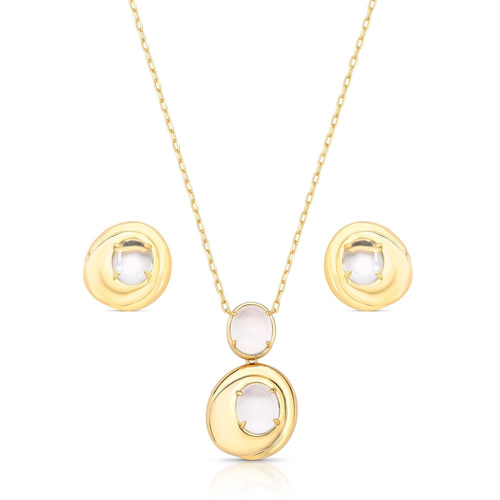 Conjunto Ovais Lisos Banho Ouro 18K Cristal Transparente U |