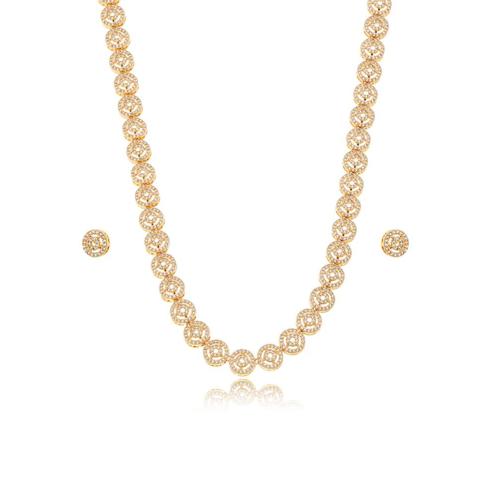 Conjunto Redondo Cravejado Banho Dourado Zircônia Transparente U |