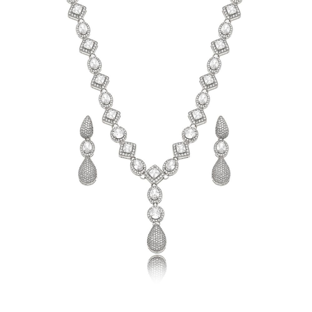 Clássico e atemporal, este conjunto redondo é inteiramente cravejado em zircônias, proporcionando brilho intenso e elegância em cada detalhe. O banho prateado confere um toque sofisticado e versátil, perfeito para iluminar produções tanto do dia a dia quanto de ocasiões especiais.