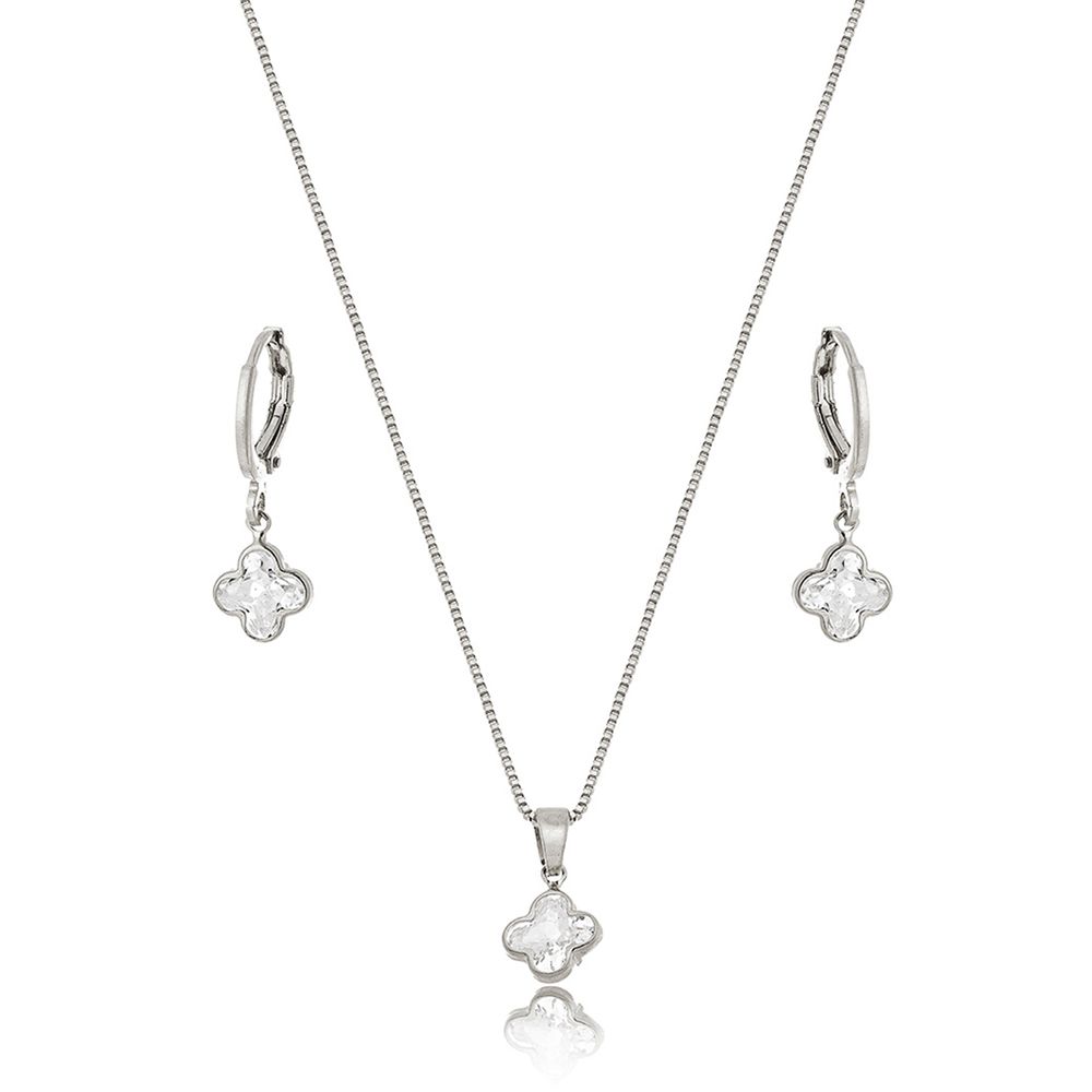 O Conjunto Trevo Delicado Banho Ródio Cristal traz o charme do trevo em uma versão minimalista e sofisticada. Cada peça apresenta cristais delicadamente lapidados, que refletem a luz com suavidade e criam um brilho elegante. O banho Ródio reforça o acabamento refinado e atemporal, tornando o conjunto perfeito para quem busca delicadeza, simbolismo e estilo no dia a dia.