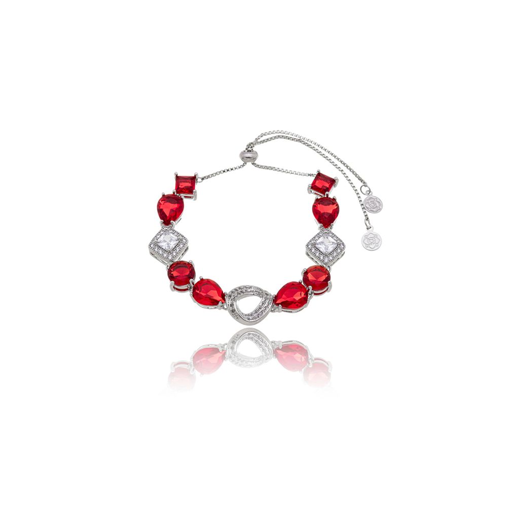 Pulseira ajustável com formas geométricas cravejadas em zircônias e cristais, criando um visual moderno e sofisticado. No banho Prateado, a peça ganha brilho elegante e acabamento impecável, perfeita para compor looks versáteis com estilo contemporâneo.