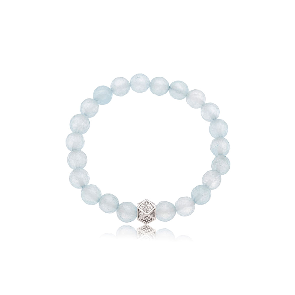Pulseira de silicone com volta de jade natural e detalhes geométricos cravejados com zircônias. Um acessório moderno e versátil, que combina a suavidade do silicone com a elegância da jade e o brilho das pedras. Ideal para ocasiões casuais ou especiais, oferece conforto e estilo.