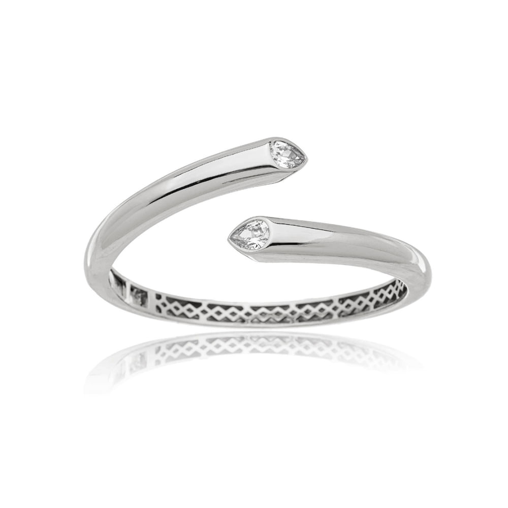 Pulseira Bracelete Aberto Meio Gotas Banho Ródio Cristal Transparente U |