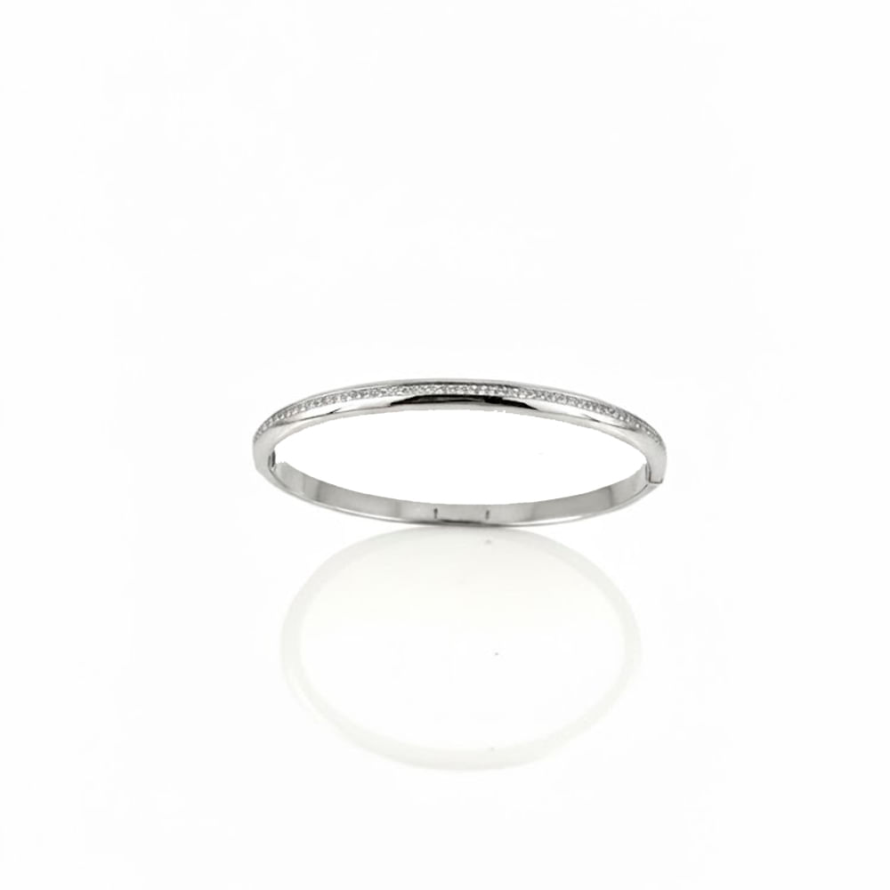 Pulseira Bracelete Meio Cravejada Banho Ródio Zircônia Transparente U |
