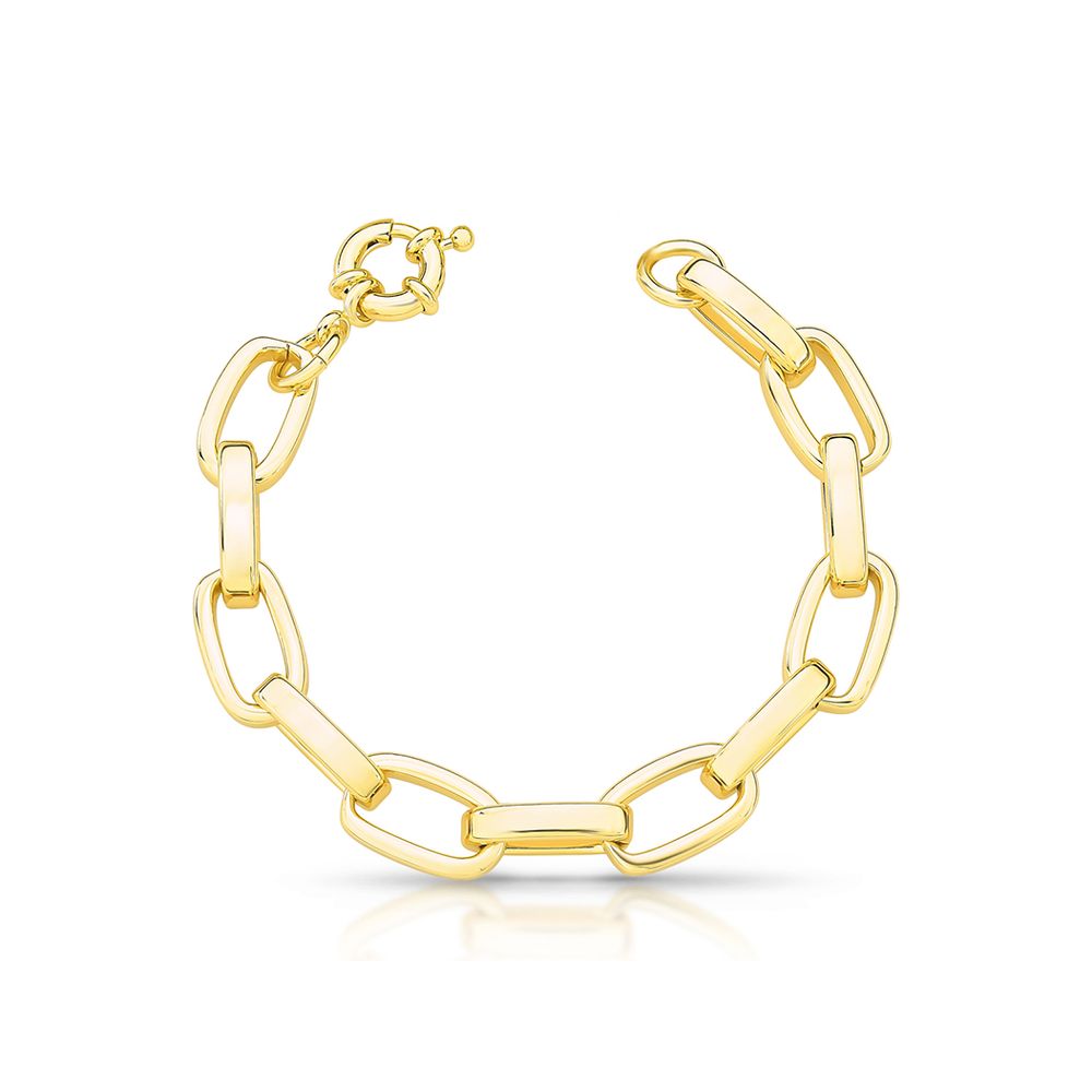Pulseira Elos Retângulos Grandes Banho Ouro 18K Dourado U |