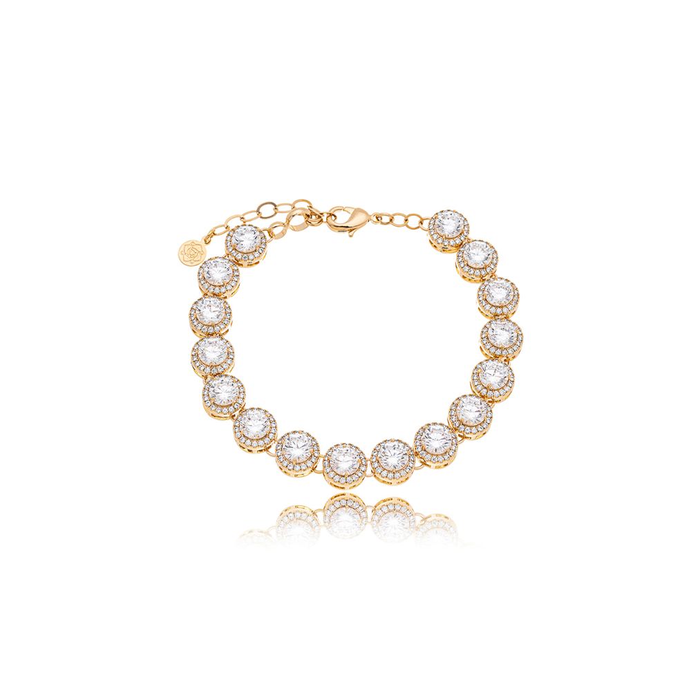 Pulseira Formas Geométricas Gota Cravejada Banho Dourado Transparente U |