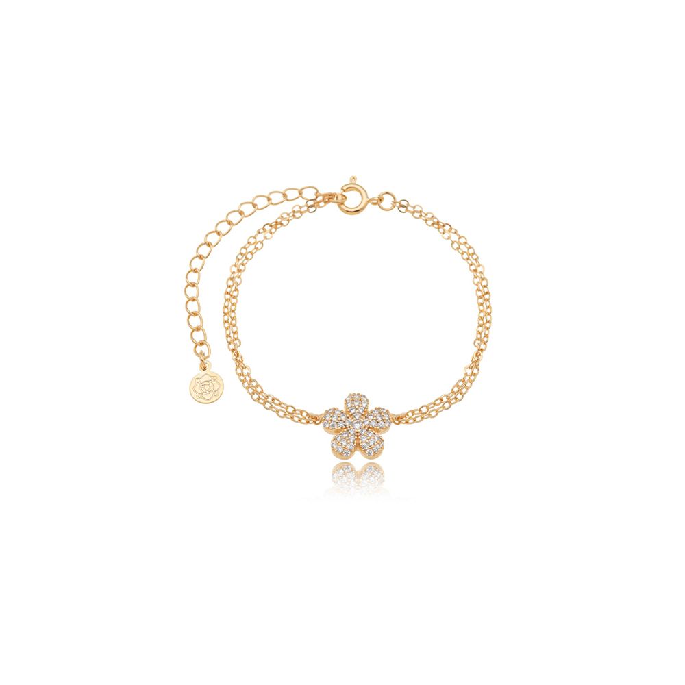 Pulseira Pingente Flor Cravejada Banho Ouro 18K Zircônia Transparente U |