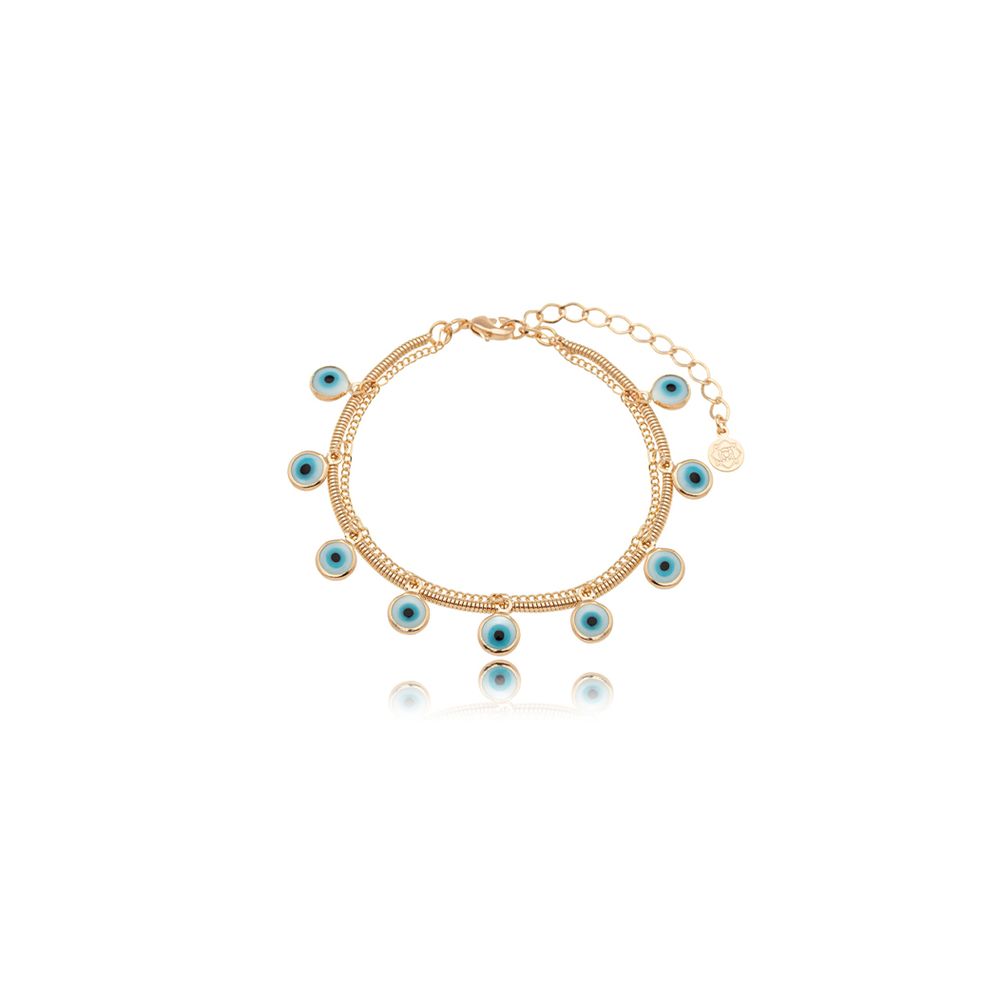 Pulseira Pingentes Olho Grego Malha Lisa Banho Ouro 18K Azul U |