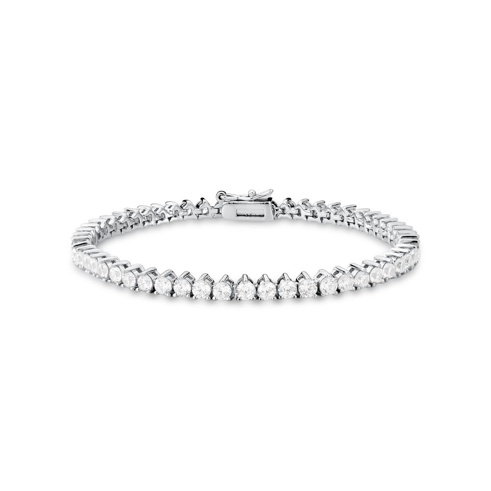 Pulseira Riviera Delicada Banho Ródio Zircônia Transparente U |