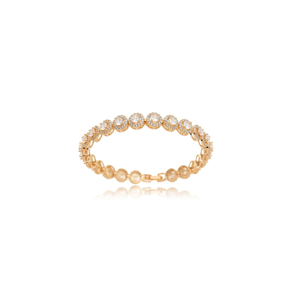 A Pulseira Riviera Redondo Cravejado Pedra é uma peça elegante e atemporal, pensada para trazer brilho e sofisticação ao pulso. O design com elementos redondos cravejados em zircônias cria um efeito luminoso delicado, valorizando a peça com equilíbrio e refinamento. O banho dourado confere acabamento nobre e versátil, ideal para composições que vão do dia a dia a ocasiões especiais. Feminina e sofisticada, é perfeita para usar sozinha como destaque ou combinada com outras pulseiras, criando um mix elegante e contemporâneo.