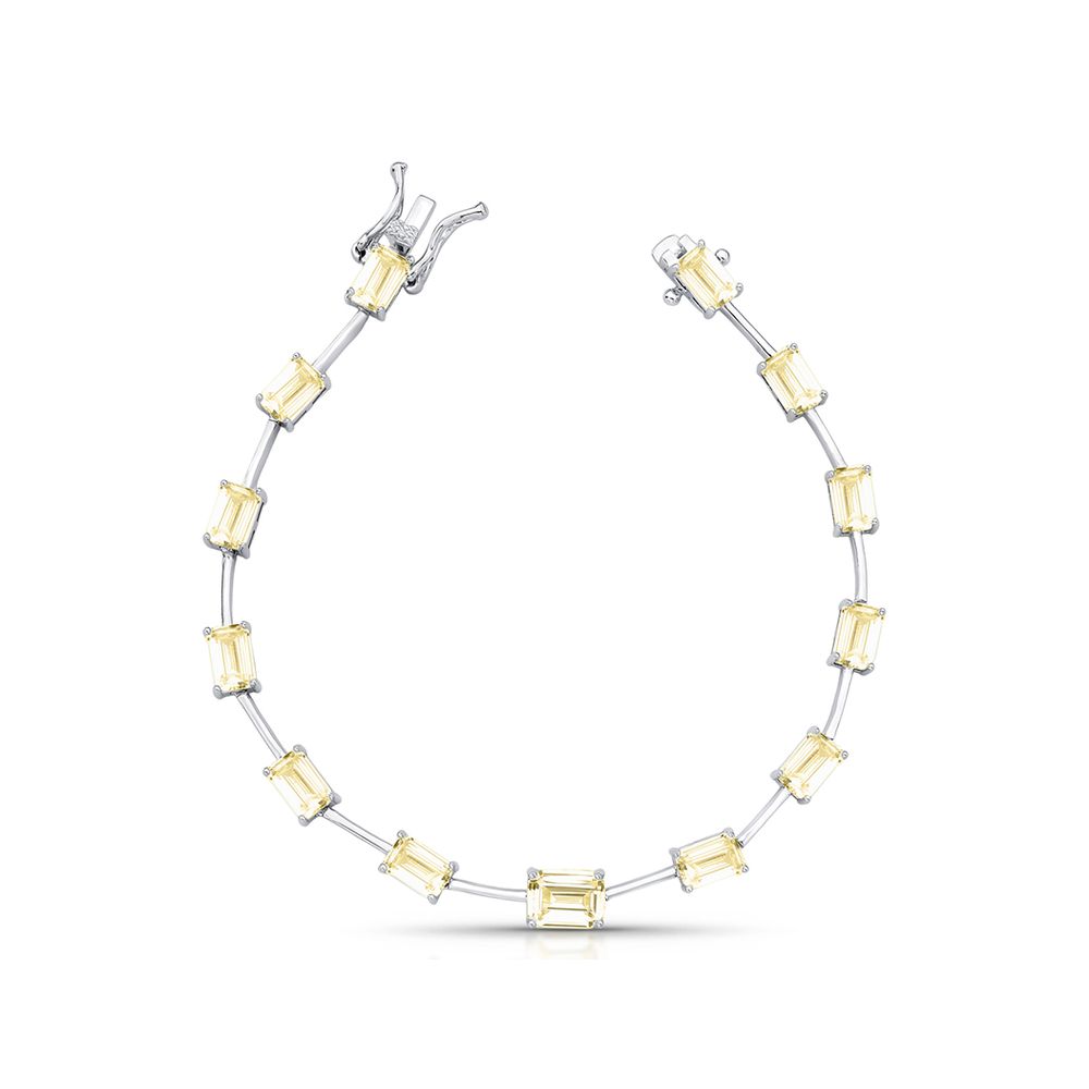 A Pulseira Riviera Retangular traz o charme do design clássico aliado a uma estética moderna e sofisticada. Banhada em ródio, ela é composta por cristais retangulares alinhados com precisão, criando um brilho contínuo e elegante no pulso.