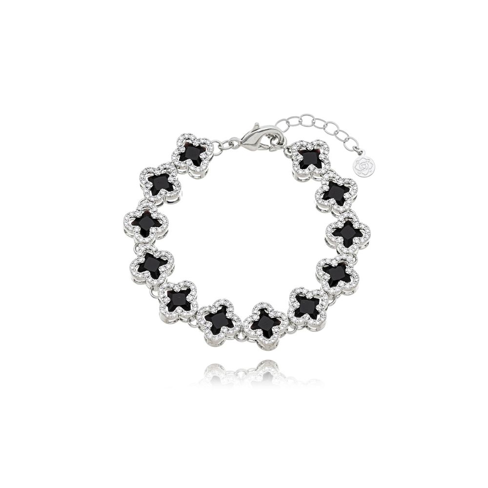 Pulseira Trevos Cravejados Banho Prateado Zircônia Preto U |