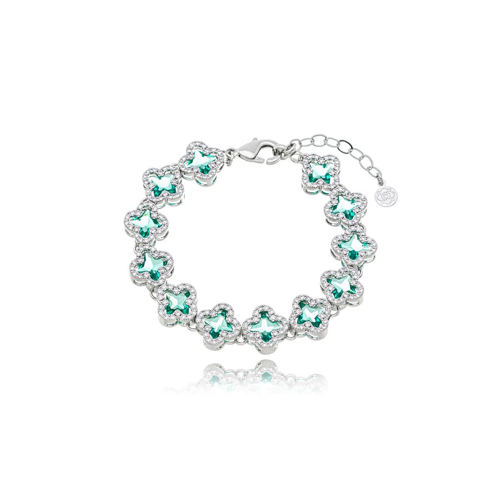 Pulseira Trevos Cravejados Banho Prateado Zircônia Turmalina U |